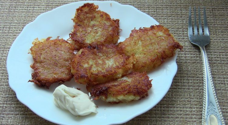 Кто не любит драники? Хрустящие со свежей сметанкой? Есть очень простой рецепт их приготовления, в нем нет ни муки, ни яиц. Картофель и лук и все. Нам нужно: на 1 кг картофеля – 2 средние луковицы, соль, перец по вкусу., растительное масло для жарки. Картофель натирать сразу после чистки, нельзя его хранить в воде, она забирает крахмал. Первым натирать лук, если натереть первым картофель, он может потемнеть